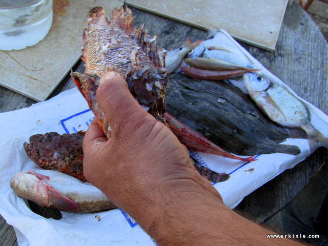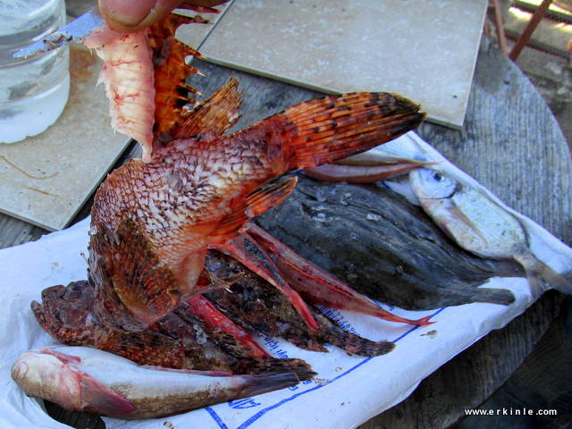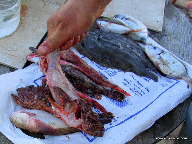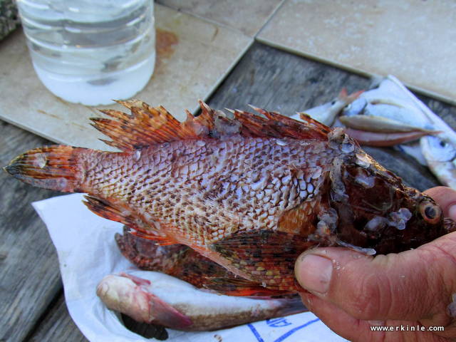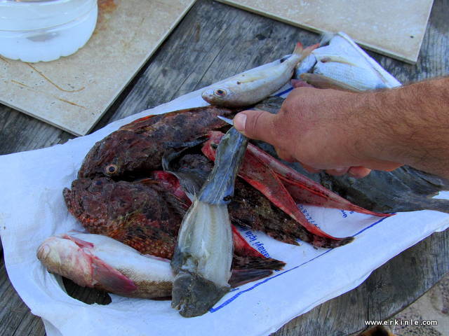 Küçük yada büyük balıkçılar denizin derininden yakaladıkları her balığı bazan istedikleri paraya satamadıklarından kendilerine ayırır veya garibanın birine verirler veya kedilere atarlar. Siz almak istediğinizde parasız bile vermek isteseler bir siftah atmanız en güzeli. Lüks restoranlarda bu balıkların çok değerli olduğunu hatırlayın. bizim buralarda pek bilmeseler de 10.-TL gibi bir fiyata satıldığını duymuştum iskorpit, kayabalığı, adabeyi gibi balıkların. Neymiş afrodizyakmış… Doğru olabilir, zira balıkta E vitamini ve çinko var.