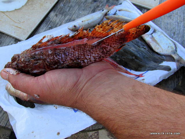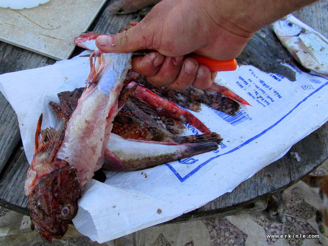 - Adabeyi, iskorpit gibi balıkları temizlerken