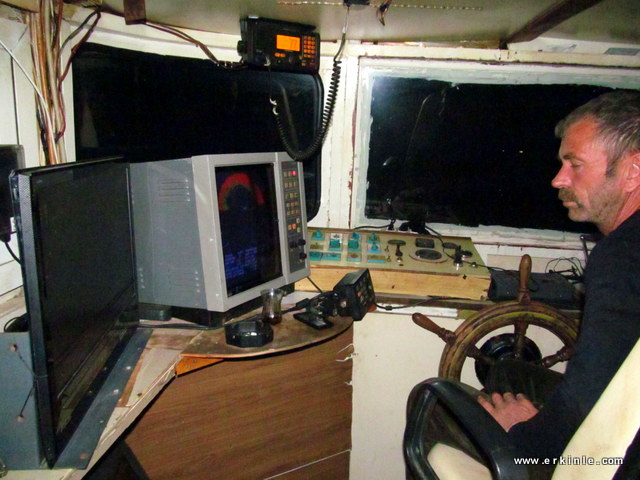 Bunu da yapan kaptan köşkünde sonar ekranlarına bakan teknenin reisi. En son teknoloji alet edevatınız bile olsa ekrandaki renklerin ne anlama geldiğini çözemediyseniz ağları denize atar durursunuz…