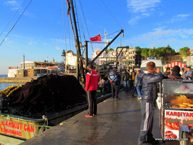- didim Altınkum limanında balık almaya gelen parakendeciler ve yerel halk