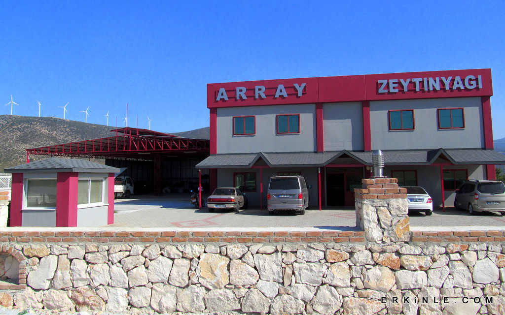 Array Zeytinyağ Fabrikası Günde 90 ton zeytin işleme kapasitesine sahip. 2003 yılında kurulan tesis bünyesinde ayrıca ürettikleri zeytinyağ ve zeytin ürünlerinin sergilendiği bir de showroom var. Burdan dilerseniz zeytinyağ, zeytinyağ sabunu, sele siyah zeytin, ve benzeri ürünlerden satın da alabiliyorsunuz.