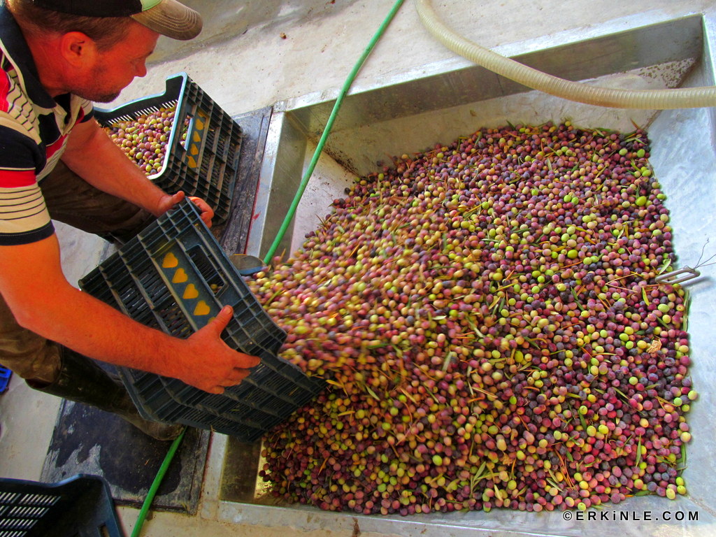 Yağda bizim aradığımız aroma, yakıcılık ve meyvemsilik için her seferinde delice zeytinlerden de topladığımız taneleri karıştırdık diğer zeytinlere kasalarda.