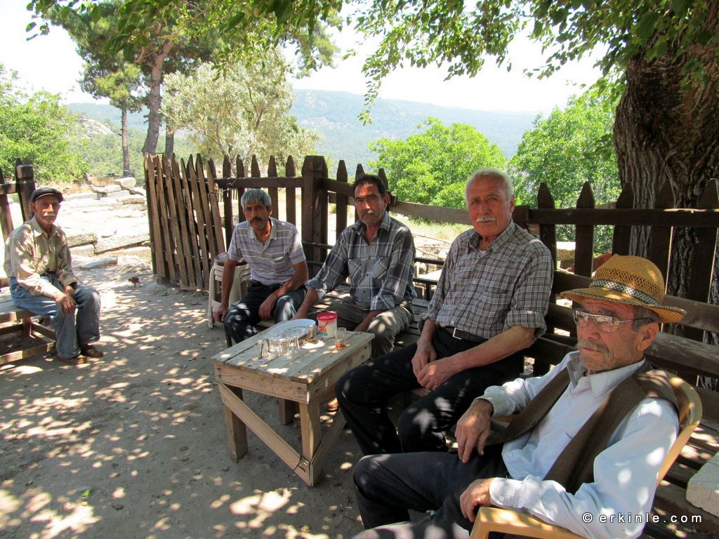 Antik kente girişte bizi karşılayan Antik kentin Bekçisi Ali Bey çay demlemiş, ikram ediyor. Yine bu yörenin insanında gördüğüm içtenlik ve samimiyetle çaylar içiliyor, tazeleniyor, sohbet her zamanki gibi koyu, tavşan kanı…